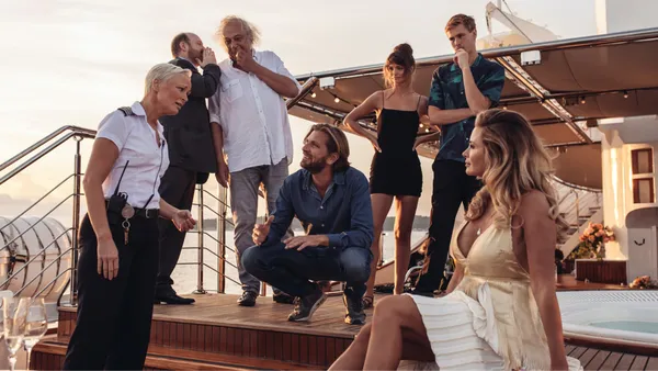 Hela teamet och den internationella stjärnspäckade casten har nu avslutat inspelningarna i Grekland på lyxyachten Christina Onassis i Joniska havet mellan Grekland och Italien och på ön Evia. I Triangle of Sadness blir modellerna Carl (Harris Dickson) och Yaya (Charlbi Dean Kriek) tillsammans med några miljardärer överrumplade av en storm. Båten sjunker och de strandar på en öde ö. I kampen om överlevnad vänds hierarkierna upp och ner och plötsligt befinner sig alla i en postapokalyptisk situation där all civilisation har upphört.
